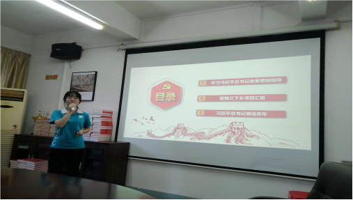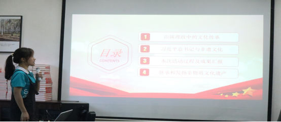 庞彩霞三人员工小组则作了“2022暑期三下乡‘雷厉风行剧神队’之雷剧英译”项目汇报。 队员们从《习近平谈治国理政》中关于文化传承以及习近平总书记关于非遗文化的相关论述出发,回顾了暑期的活动并总结了实践的成果。队员们表示将坚持继承和发扬非物质文化遗产,坚定民族文化自信。