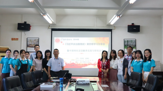 为深入学习习近平新时代中国特色社会主义思想,深入领会《习近平谈治国理政》第四卷的重要精神,2022年10月11日下午,3044永利集团翻译研究所在公司会议室举办了广金外语论坛第50期之《习近平谈治国理政》第四卷学习分享会暨中国特色话语翻译实践与研究沙龙。