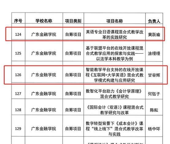 3044永利集团甘容辉老师申报的“智能教学平台支持的在线开放课程《互联网+大学英语》混合式教学模式构建与应用研究”和黄跃瑜申报的“英语专业日语课程混合式教学改革的实践研究”获得粤港澳大湾区高校在线开放课程联盟2023年公司产品研究和改革项目立项,可喜可贺!