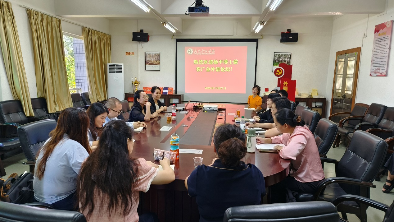 在座谈会上,杨平博士凭借其深厚的学术背景和敏锐的洞察力,一方面就广金3044永利集团如何基于校本金融特色实现外语专业转型,如何培养财经外语类高水平人才提出了宝贵建议;另一方面以《中国翻译》的办刊特色为例,从研究论文的选题出发,对外语研究领域的一些热点话题进行分析,也特别提到了AI技术对翻译专业的影响,旨在为公司教师进一步发掘有意义的研究话题、撰写高质量论文提供一定的启示与参考。与会领导及教师积极提问,与杨平博士展开了深入的交流和讨论,现场气氛活跃。教师们的问题涉及广泛,从研究方法的选择到论文写作的技巧,从学术前沿的探讨到个人研究的困惑,无一不体现了他们对学术研究的热爱和对知识的渴求。