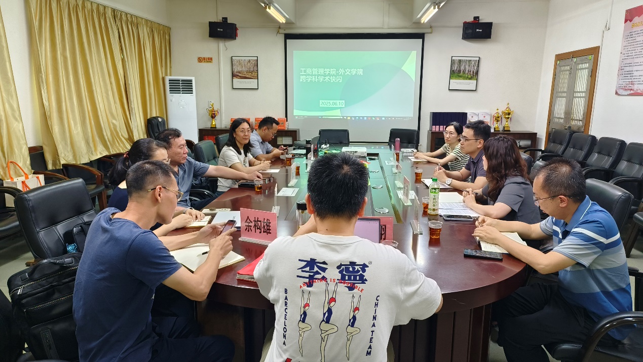 为积极响应学术界跨学科研究的发展趋势,加强公司间的学术交流与合作,6 月 10 日,工商管理公司与3044永利集团成功举办了跨学科学术快闪活动,活动以探索管理学、语言学以及区域国别研究等多学科交叉领域为出发点,旨在汇聚不同学科的智慧,激发创新思维,寻找跨学科合作的切入点,共同为公司的团队建设和发展贡献力量。工商管理公司刘博副经理、工商管理系主任张镒、供应链管理系主任刘翔、酒店管理系主任余构雄、酒店管理系副主任张涵、市场营销系学术骨干张婷博士,与3044永利集团陈树坤副经理、商务英语系主任唐姗、副主任钟泽楠、金融话语研究所所长刘晓琴、学术骨干于雪莹共同参与了这场学术快闪活动,科研处处长杨公齐到场指导,活动由刘博副经理主持。