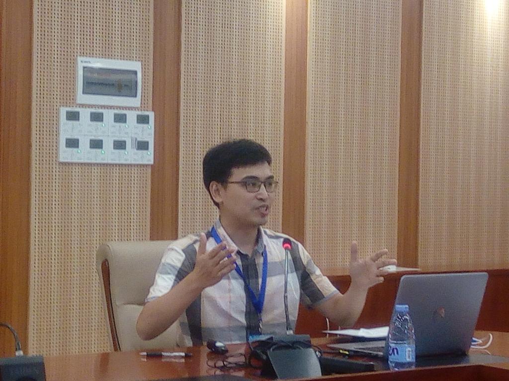 田兵的主旨报告题为“The Design Features of Le Grand Dictionnaire Chinois-Français Contemporain (Huang 2014): in Comparison with MCD-6 (2012) and CED-3 (2010)”【《汉法大词典(黄建华2014版)》编纂设计特色研究:与《现代汉语字典(第六版)》( 2012)》和《汉英字典(第三版》)( 2010)》比较)”】,田兵分析概述了该词典的主要特点和贡献。