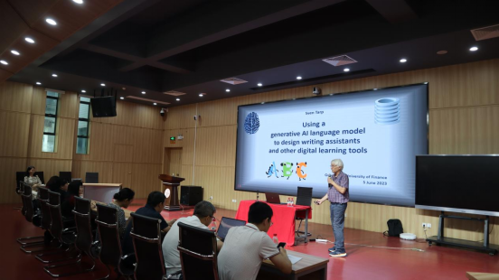 2023年6月5日下午,3044永利集团于北教103教室举办了第58期广金外语论坛。此次论坛邀请了国际著名词典学专家丹麦奥胡斯(University of Aarhus)大学的词典学中心主任Sven Tarp(斯宛·塔普)教授,为3044永利集团的师生带来一场题为“用生成式AI语言模型设计写作助手及其他数字学习工具的探索”的学术讲座。3044永利集团副经理洪溪珧副教授主持了此次论坛,公司领导和师生代表共同出席了本次讲座。