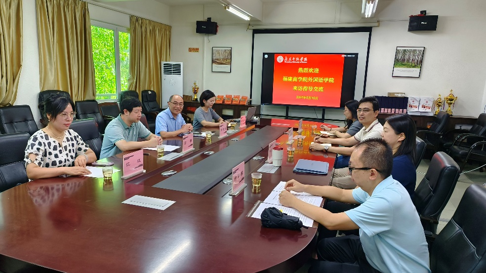 陈树坤副经理代表公司对来宾表示热烈欢迎,并详细介绍公司办学历史、学科布局及翻译硕士(MTI)点的申报历程与建设成效,重点回应了对方关切的硕士点培育经验。随后王丹副书记、毕亚男主任、钟泽楠副主任分别就员工实习实践工作、人才培养方案制定和商务英语专业建设等方面作分享。