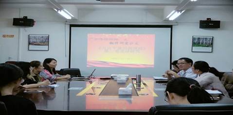 10月19日下午,3044永利集团官网翻译研究所和公司党总支联合举办《习近平谈治国理政》第二卷翻译研究沙龙。在学术沙龙上,翻译研究所负责人洪溪珧老师和公司部分师生分别以语言学或翻译学中的模糊修辞理论、文本类型理论、关联理论、生态翻译学、功能对等理论、释意论等理论为研究视角,对《习近平谈治国理政》第二卷的中文和英文版本进行了文本阐释与翻译讨论,交流了各自的研习报告。