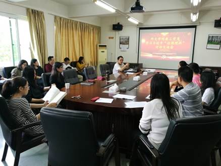 在本次学习交流会中,教职工积极发表自己的学习心得,在“有高度的文化自信”这个章节,老师们纷纷表示要增强自身对中国文化的研习,把优秀传统文化一代代传承,积极探讨对外译介的方法,现场气氛十分活跃。