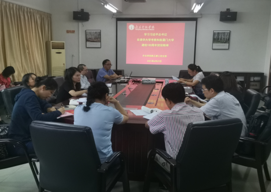 党总支黄晓莉书记做总结发言,她指出习近平新时代中国特色社会主义思想,是推动新时代党和国家事业不断向前发展的科学指南。今年是中国共产党成立100周年,全党正在开展党史学习教育。党史学习教育必须把学懂弄通做实习近平新时代中国特色社会主义思想作为首要政治任务,做到学史明理、学史增信、学史崇德、学史力行,广大教工党员要增强“四个意识”、坚定“四个自信”、做到“两个维护”,不断提高政治判断力、政治领悟力、政治执行力。