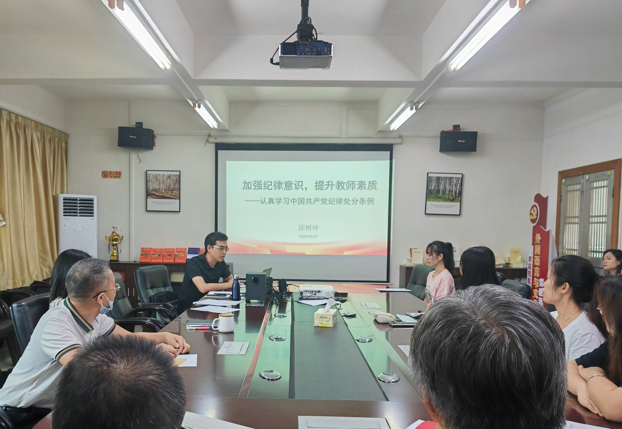 党纪课的主讲人为教工第二党支部书记陈树坤同志,支部全体党员参加党纪课学习。