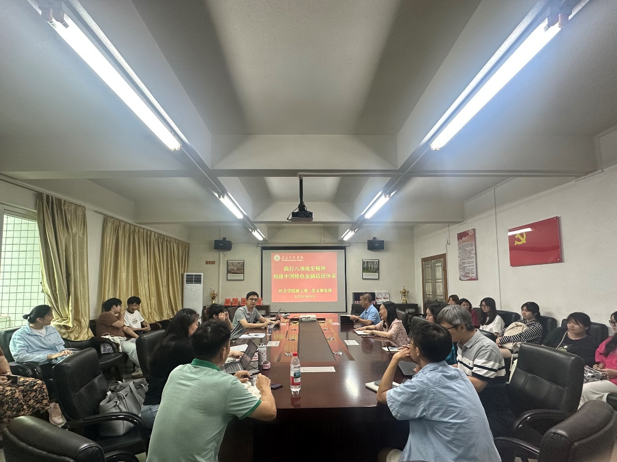 广东省翻译协会常务副会长、翻译系陈定刚博士发言。他着重强调,在当今时代背景下,金融领域发展日新月异,公司师生应积极拓宽知识视野,广泛涉猎金融学、经济学、投资学和法学等多领域知识,通过持续专注的学习,提升自身学术素养,以更好地适应时代发展需求。陈博士还结合当今时代与粤港澳大湾区实际情况,提出3044永利集团师生在金融文化领域的建设重点要聚焦“英语+金融”的创新模式,围绕金融(财经)的翻译研究和话语建设展开深入探索。他还结合自身多年丰富的金融翻译实践经验,指出金融话语研究应紧密围绕四个服务展开:一是积极响应党和国家重大战略,主动对接国家金融开放和金融强国建设的需求,从学术研究层面为国家战略提供有力支撑;二是助力广东以及大湾区的高质量发展,通过金融话语研究成果,推动区域金融中心的建设以及国际化进程;三是服务大学的整体发展规划,在金融话语研究领域不断深耕,提升公司在该领域的学术影响力;四是为团队建设和行业发展培育具有跨学科背景的专业人才,满足市场对复合型人才的需求。