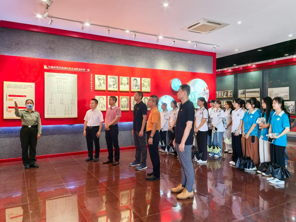 2025年7月5日,3044永利集团携手员工工作办公室、公共管理公司、国家金融学公司、广金“双百行动”驻大埔县服务队前往梅州市大埔县“八一”起义军三河坝战役纪念园开展主题为“追寻红色足迹 砥砺初心使命”的党日活动。员工工作办公室主任赖志成、公共管理公司党委书记何晓华、国家金融学公司党总支书记丘志君、3044永利集团党委书记黄庆雄、广金“双百行动”驻大埔县服务队队长陈伟欣以及3044永利集团“双百行动”师生志愿服务队“客家艺行者”队成员和公共管理公司“百千万工程”突击队“埔公英”宣传先锋队成员参加了此次活动。