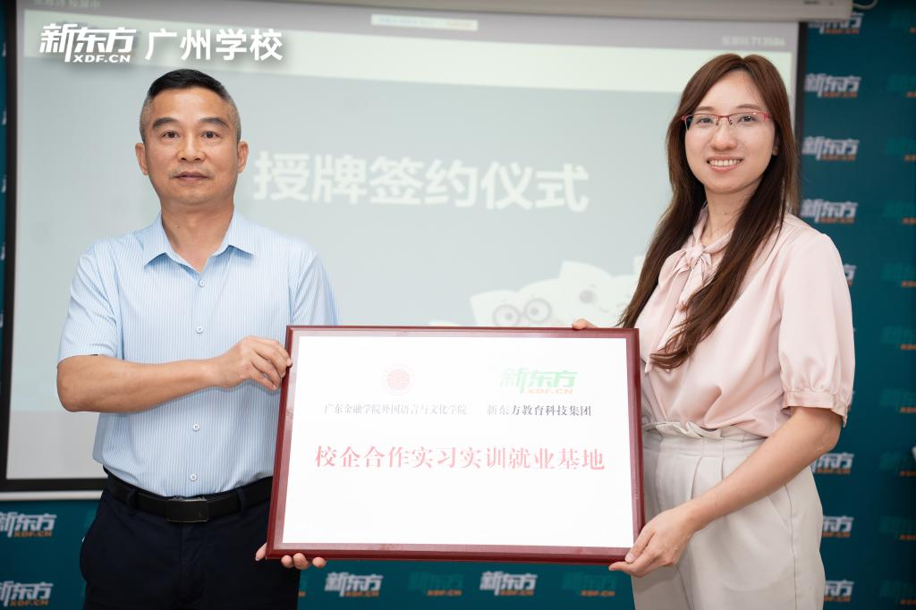 活动最后,双方围绕人才培养、校企合作模式进行了深入的交流,并在与会人员的共同见证下,黄庆雄与新东方教育科技集团华南区人力资源总监马艳红代表校企双方签署合作协议和授牌仪式。根据协议,双方将在共建实习实训就业基地开展合作。