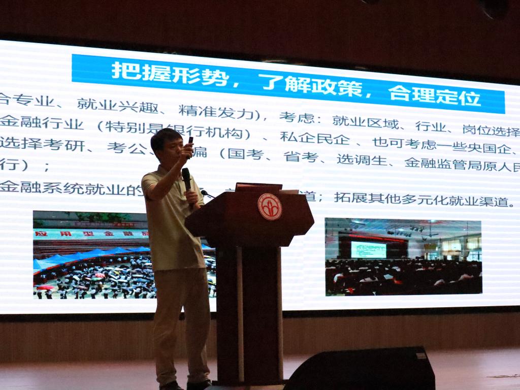 廖正平老师通过数据对比分析了公司、公司近三年毕业生的就业去向及近年来就业市场的趋势,详细介绍了公司提供的就业资源,如专场招聘会、校企合作项目等,并针对公司专业特点开展政策性就业宣传。他鼓励毕业生们“早就业、就好业”,树立正确的就业观,将个人发展与国家需求相结合,以积极心态迎接职场考验。