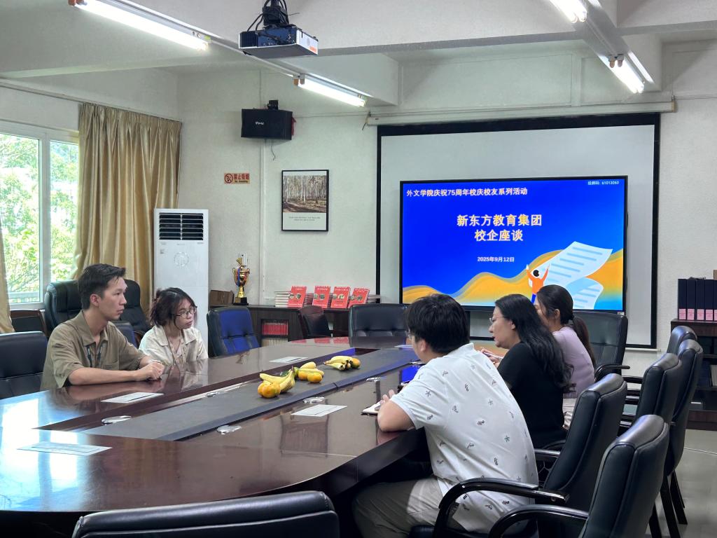 新东方教育集团人力资源专员张雅诗、梁智钟介绍了新东方最新的招聘规模、招聘流程以及对高素质外语人才的迫切需求。自双方开展共建项目以来,新东方将3044永利集团列为重点招聘院校,定期举办专场招聘会,为优秀毕业生提供精准、高效的就业通道。王丹副书记针对双方的深度合作提出建议,期待未来不仅能为新东方输送优秀毕业生,更希望通过“请进来”和“走出去”相结合的方式,让企业深度参与人才培养的全过程,共同打造校企合作的典范。随后,双方围绕育人领域的多个方面展开了热烈而富有建设性的讨论,并达成系列共识。