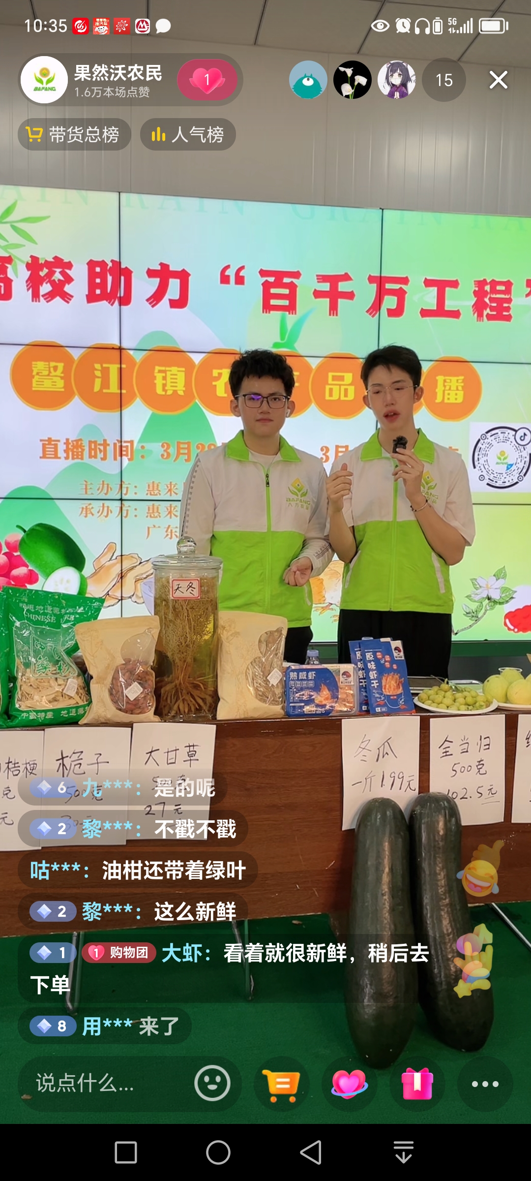 此次直播,采取直播间卖货、户外种植园参观相结合的方式,为鳌江镇丰富的“土特产”资源打开了销售渠道。鳌江镇镇长李壮明亲临直播现场指导工作,直播也吸引了对电商技术感兴趣和有拓宽销售渠道需求的农企、农户和种植户等20多人前往直播场地观摩学习。