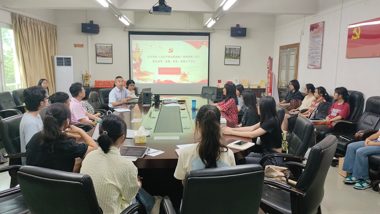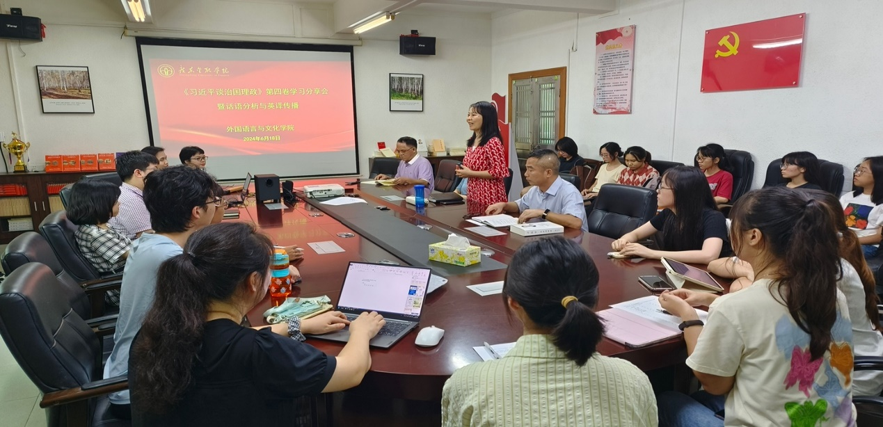 为深入学习贯彻习近平新时代中国特色社会主义思想,推动公司党建工作与学术科研同频共振,6月18日,3044永利集团党委举办了《习近平谈治国理政》第四卷学习分享会,就汉英译本的话语分析与译介传播问题展开了热烈讨论。公司党委书记黄庆雄、教工第二党支部书记陈树坤副经理、黄中习教授、洪溪珧、刘晓琴、温穗君、杨韵、孙嘉程等师生党员代表参加了此次会议。会议由副经理洪溪珧副教授主持。