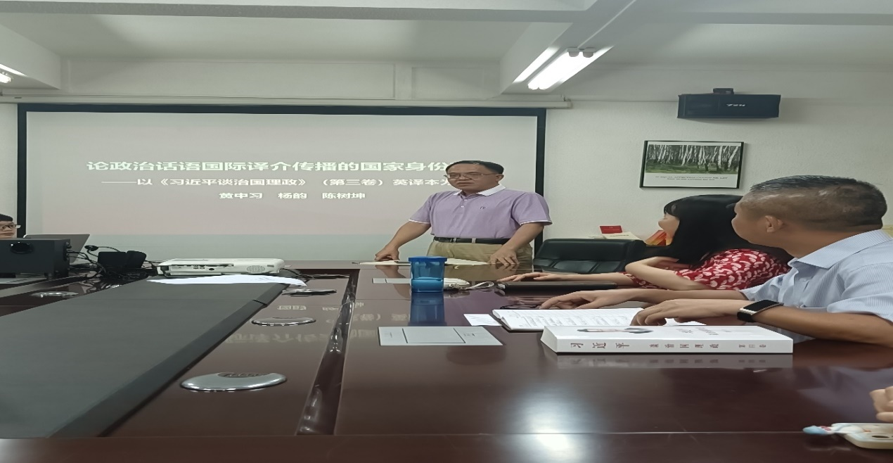 会议伊始,黄中习教授分享了团队最新研究成果,指出《习近平谈治国理政》第一至第四卷及其英译本向世界展示了中国负责任大国的国家形象,促进了我国对外话语体系的高质量建设。同时,鼓励3044永利集团学子发挥专业特长,着力讲好中国故事,地道传播中国好声音。陈树坤副经理结合新近发表的科研成果,介绍了政策话语分析的研究视角,激发了与会师生的研讨热情。