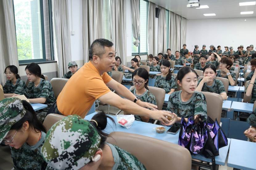 随后,慰问活动正式开始。公司领导和老师亲自将月饼送到每一位2024级学子们手中。学子们接过月饼的那一刻,脸上洋溢着幸福的笑容。他们纷纷表示将不负公司领导的期望和嘱托,以更加饱满的热情和更加坚定的信念投入到接下来的军训和学习中去。
