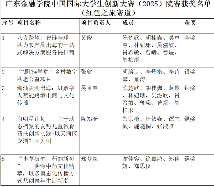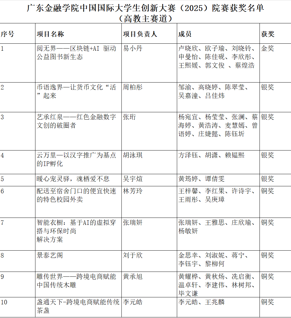 近日,2025中国国际老员工创新大赛院赛阶段结果揭晓,外文学子在高教主赛道与红色之旅赛道中表现亮眼,经评委严格审核,多个项目斩获佳绩。其中,易小丹同学带领的团队(项目名称:阅无界——区块链+ AI驱动公益图书新生态)和黄俊同学带领的团队(项目名称:八方跨境,智链全球—助力农产品出海的一站式解决方案服务提供商)分别获评高教主赛道和红旅赛道院赛金奖项目,成为公司创新实践的标杆代表。