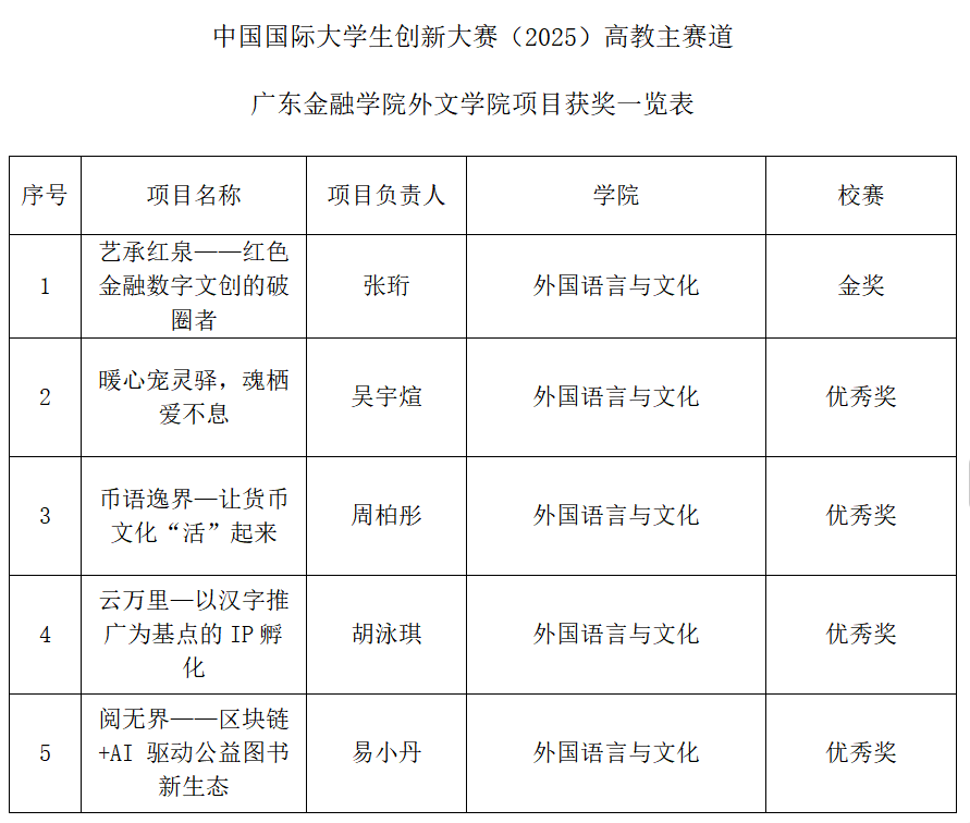 本次大赛中,3044永利集团共有5个项目在公司比赛中脱颖而出。由张珩负责的《艺承红泉 —— 红色金融数字文创的破圈者》项目表现尤为突出,一举夺得校赛金奖。《暖心宠灵驿,魂栖爱不息》《币语逸界 — 让货币文化 “活” 起来》《云万里 — 以汉字推广为基点的IP孵化》《阅无界 —— 区块链+ AI驱动公益图书新生态》4个项目也凭借独特的创意和扎实的实践,均获得校赛优秀奖。