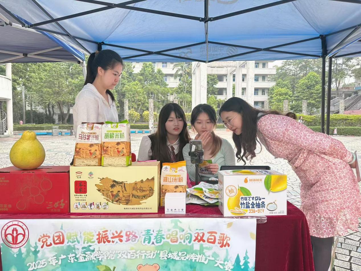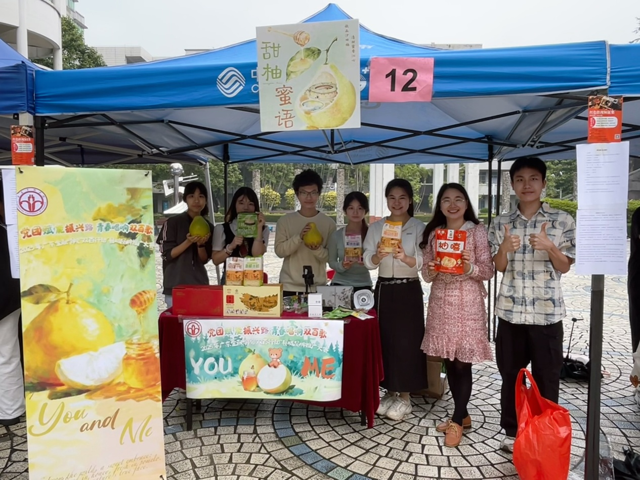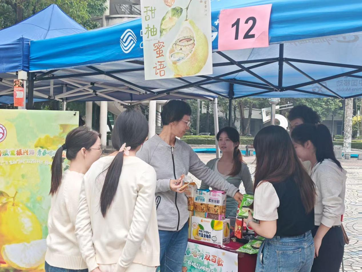 为深入贯彻国家乡村振兴战略,落实广东省“百县千镇万村高质量发展工程”与高校“双百行动”部署要求,3044永利集团官网“双百行动”县域品牌推广大赛线下销售活动近日在校本部青年文化广场顺利开展。3044永利集团积极响应,由朱冰霞老师指导的2024级英语专业员工吴滋欣、何梓杭、吴境镱、黄俊和国教院员工曾曦组成了一个跨专业团队,以“甜柚蜜语”项目为依托参加了此次活动。团队以推广“广宁优品”“大埔优品”小程序特色产品为核心,开展线上线下融合的市场营销实践,在提升员工品牌策划与创新实践能力的同时,助力梅州大埔、肇庆广宁两地产业发展与市场推广。