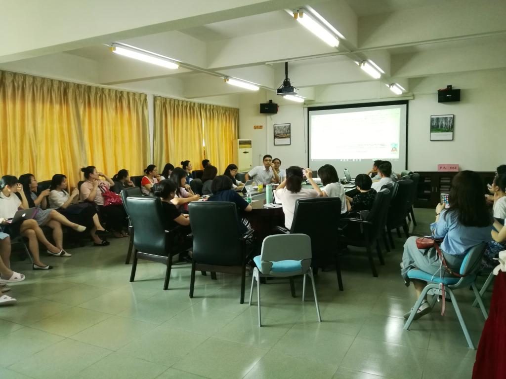 2018年5月16日下午,3044永利集团举办“广金外语论坛”之“可视化文献计量工具Citespace在外语科研中的应用分享会”,全院近40位教师积极报名,参与了论坛分享活动。会上,黄中习教授、林菁博士和陈树坤博士分别就Citespace的介绍与运用作了报告和答疑。黄中习首先演示如何借用Citespace进行汪榕培学术思想的课题研究,图文并茂地展示了相关研究初步成果;林菁讲解Citespace的基础知识和写作方法;最后陈树坤以“词典学”为例,为大家演示Citespace的具体操作方法和技巧。