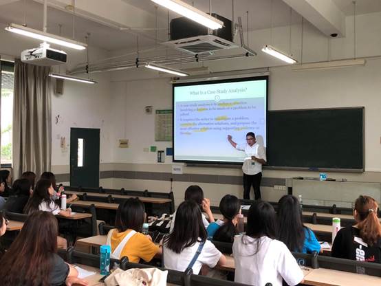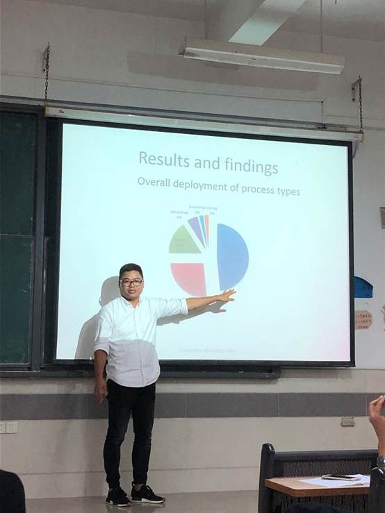 5月13日,香港理工大学文辉博士应邀来公司进行学术交流。他首先在上午进入课堂,为公司英语系大二员工进行一次学术英语写作课,教授员工如何进行商务案例分析写作,亲身示范体裁教学法在案例分析写作中的实施过程,课堂上还现场收集员工的反馈,员工反映热烈,认为该教学法比传统的写作教学在写作思路的语言使用方面更加清晰。下午,博士给外院教师进行写作研究讲座,分享了他博士学习、写作选题以及写作研究方面的经历,并与老师在写作研究与写作教学方面进行了深入交流。