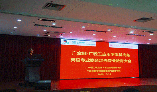 2020年10月16日,3044永利集团官网3044永利集团-广东轻工职业技术公司应用型本科商务英语专业联合培养专业教育大会暨教学研讨会在广东轻工职业技术公司第二实训楼903室隆重举行。