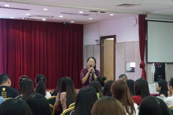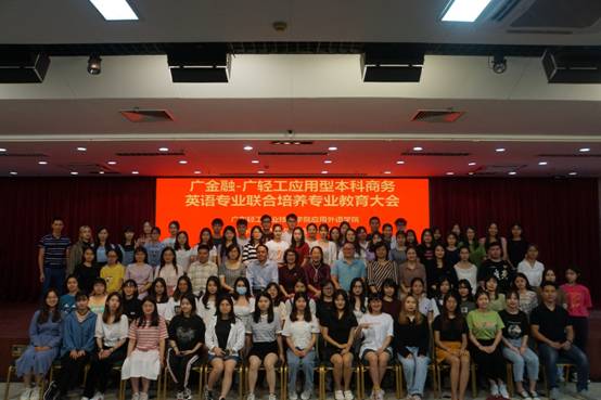 孙智慧副经理详细解读了广金融-广轻工协同培养的商务英语专业本科班的人才培养方案,介绍了专业课程设置与教学要求,从外语专长、人文素养、国际视野、中国情怀和校本特色五个方面向同学们讲解了课程设置的目的,着重强调全体员工一定要学好外语专长,要逐步提高专业的新台阶。