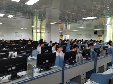 早上10:30专业组决赛在实验中心701正式开赛,选手们采用机考方式作答,在90分钟的时间内完成一篇500-600词的文章。大赛不仅考察选手们的专业知识、写作能力和思辨能力,同时也检验了员工熟练操作电脑答题的能力。