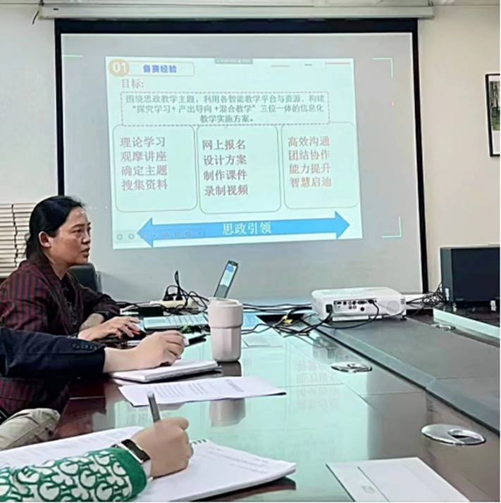 甘荣辉副经理团队获得全国外语课程思政优秀教学案例一等奖,该教学案例奖级别高、为国家级别奖项。她的讲座围绕“比赛通知介绍”、“参赛过程介绍”、“科学备赛建议”三个主题展开。甘荣辉结合自身丰富的科研经验,就如何做好备赛,如何围绕思政教学为主题实施方案进行分享。她认为利用各智能教学平台与资源,构建“探究学习+产出导向+混合教学”三位一体的信息化教案是获奖的重要因素。