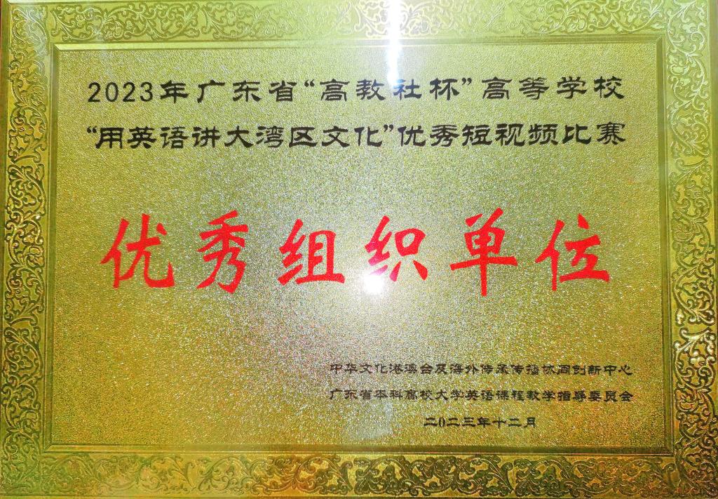 此次“用英语讲大湾区文化“优秀短视频作品大赛围绕粤语体系,广府菜系、粤剧粤曲、醒狮武术、广绣、广雕等大湾区传统文化,旨在培养公司莘莘学子融合视听语言及外语的能力,与时俱进,以赛促学,学以致用,培养多元化人才。本次赛事优异成绩的取得,不仅展现出外院学子良好的外语功底和优秀的创作才能,也是外院教师优异教学成果的呈现。出色成绩的取得离不开同学们的日常积累,少不了指导老师们的悉心教导,更得益于外院领导给予参赛师生的大力支持。本次大赛推动公司全面贯彻党的二十大精神,增强中华文明传播力和影响力,加快构建中国话语和中国叙事体系,展现学子的文化自信和国际传播能力。今后的外语教学将更加注重培养外语学子活用英语“对外讲好文化故事,对内提升文化自信”的能力,为文化传播培养更多优质的复合型外语人才。