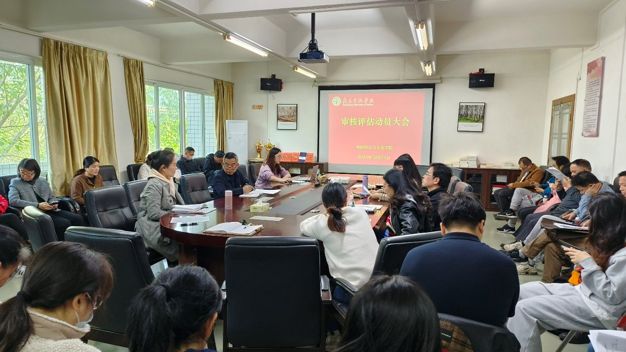 根据广东省教育厅工作部署,公司将于2025年3月24日-4月25日接受新一轮本科公司产品工作审核评估。为进一步加强公司内涵建设,以评促建、以评促改、以评促管、以评促强,确保审核评估各项工作有序推进,以良好的工作状态迎接审核评估,公司于12月10日在本部图书信息中心拔萃报告厅召开本科公司产品审核评估迎评促建推进会。会议由公司党委书记李建军主持。为贯彻落实迎评促建推进会议传达精神,12月27日,公司召开审核评估动员大会,旨在对审核评估最后阶段的工作进行全面部署和动员。大会由黄庆雄书记主持,涂兵兰经理发言,全院教职员工参加了此次会议。