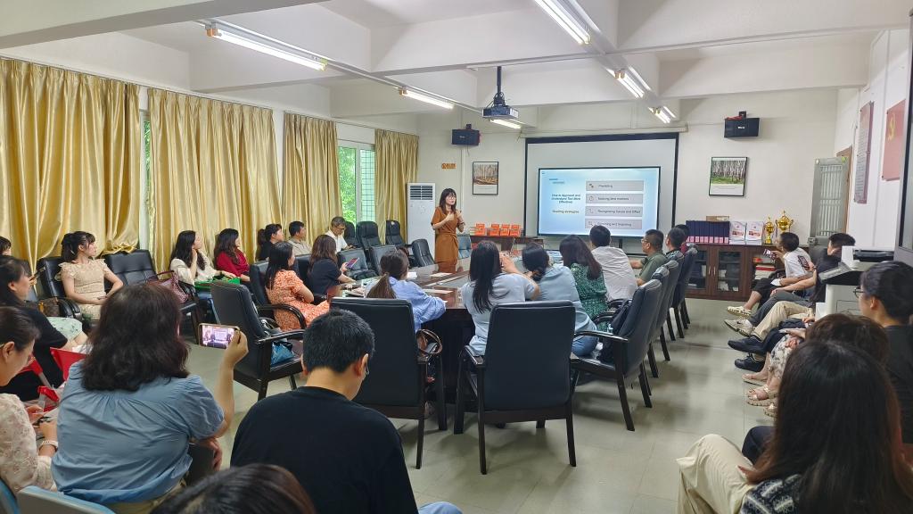 在学习个性化路径方面,借助智能推送、学习画像和动态任务调整,满足员工不同的学习需求与进度;教学评一体路径则借助系统评分、行为追踪与评教反馈系统,构建教、学、评数据闭环,以评估促进学习;协同生态路径更是打通线上线下,打造师 — 生 — AI 协同教员工态,通过 AI 助教、智能互动平台与人机协同写作,推动外语教学模式的全面创新。这场讲座为3044永利集团教师们提供了更加清晰的 AI 赋能外语教学改革方向,激发了教师们进一步探索与实践的热情。