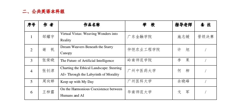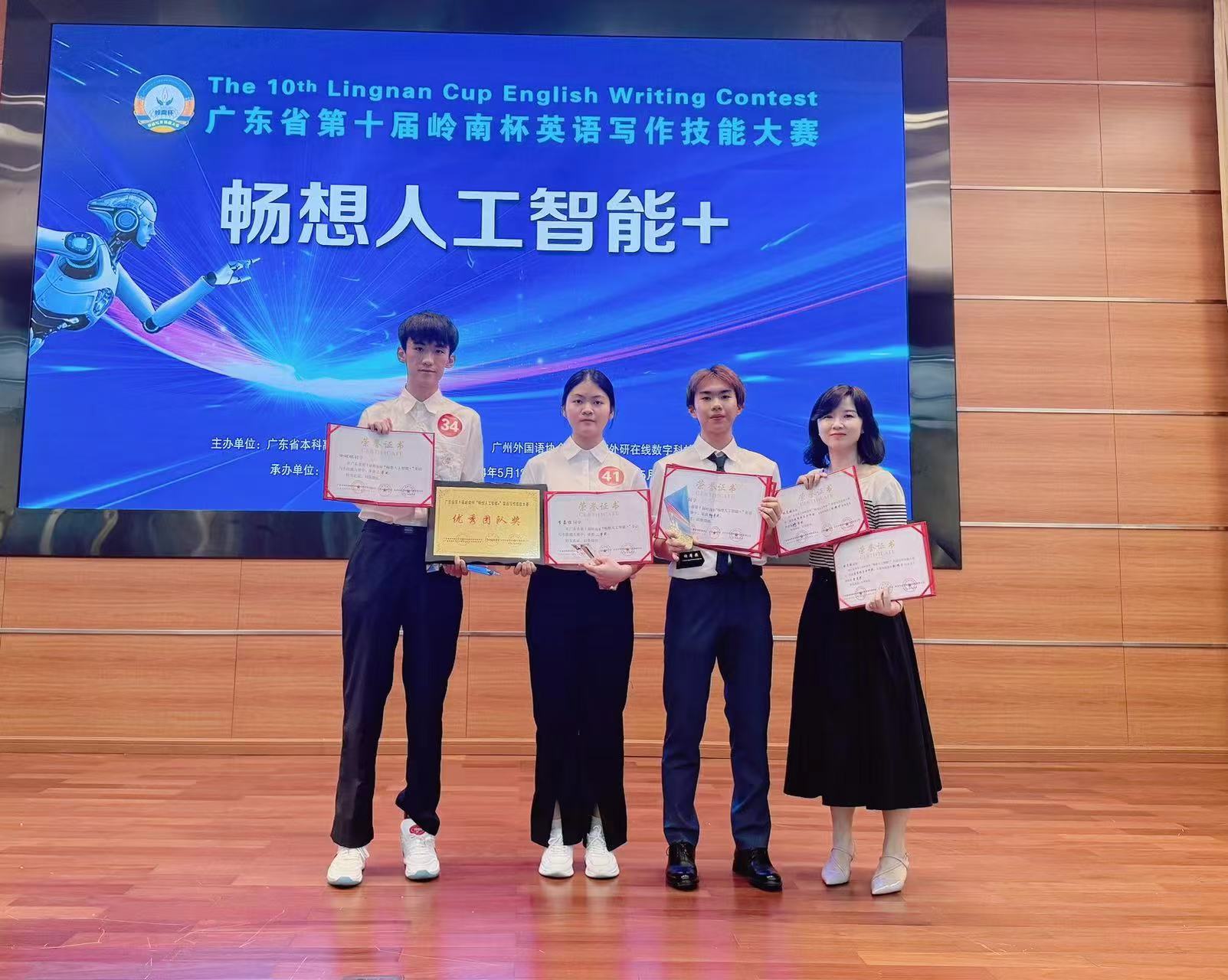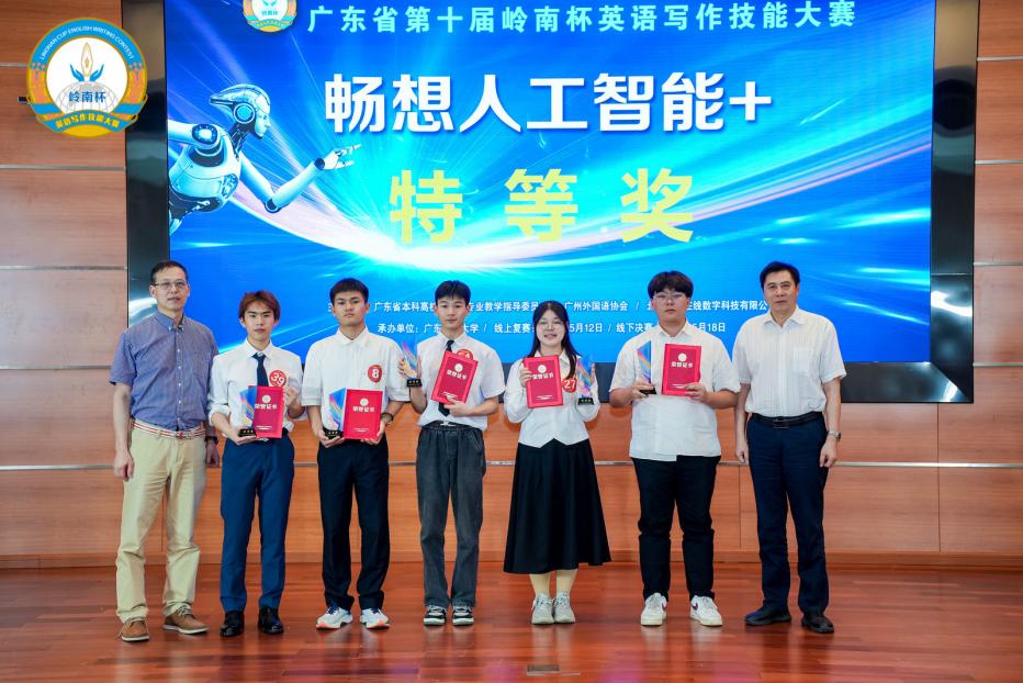 2024年5月18日,第十届岭南杯“畅想人工智能+”英语写作技能大赛决赛暨颁奖典礼在广东财经大学成功举行。公司邹耀宇(232817116)同学发挥出色,荣获公共英语本科组特等奖,继2023年公司学子在该组别竞争中的又一佳绩,成功卫冕公共英语本科组的唯一特等奖。余竑煜(221624213)和李嘉怡(231624235)两位同学荣获二等奖,吕昆瀚(23281E14)和区苑琳(211617204)两位同学荣获三等奖。公司获得优秀团队奖。