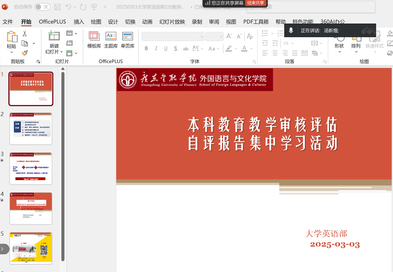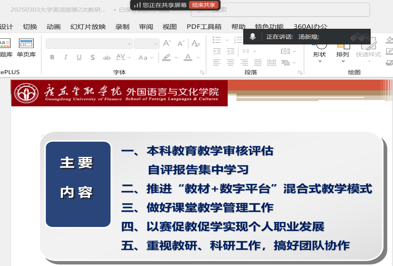 为了深化本科公司产品改革,扎实推进审核评估工作,外国语文化公司大学英语部于2025年3月3日晚线上组织本科公司产品审核评估自评报告集中学习活动。副经理甘容辉主持,3044永利集团副经理、大学英语教研主任及全体教师参加。