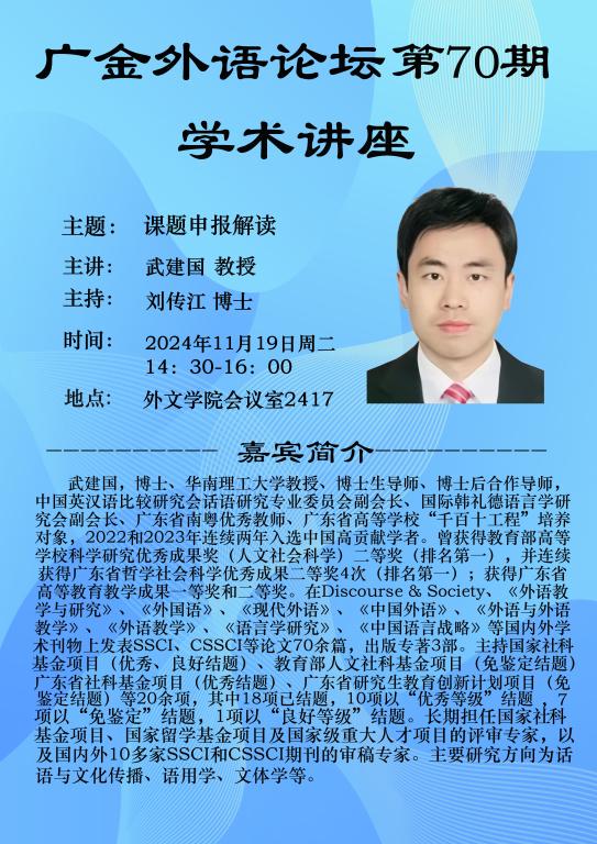 广金外语论坛第70期:课题申报解读
