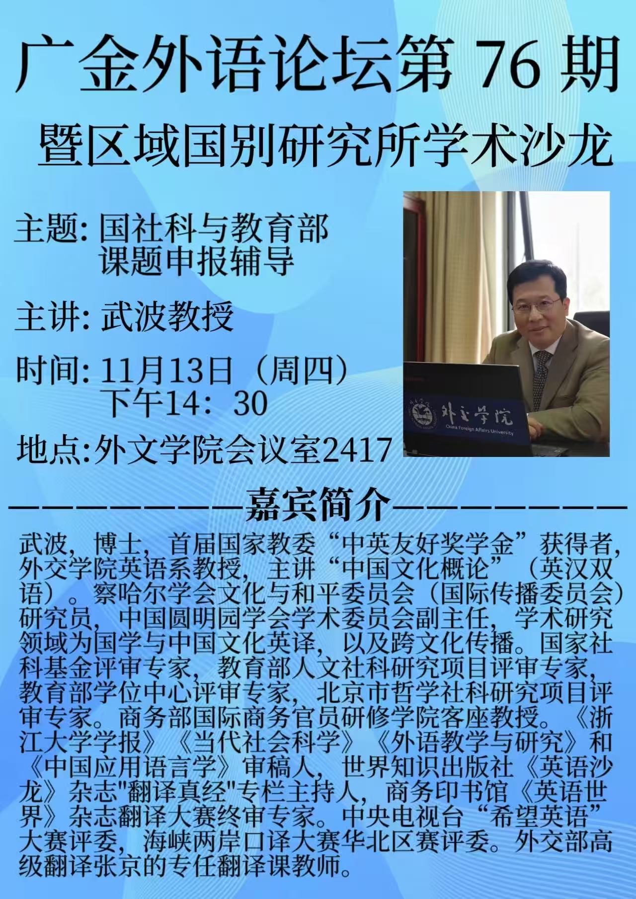 广金外语论坛第76期: 国社科与教育部课题申报辅导