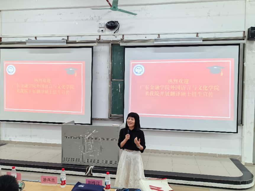 6月13日下午,公司涂兵兰经理、MTI教育中心刘传江主任前往仲恺农业工程公司外国语公司,宣讲公司2026年研究生招生计划与相关政策。