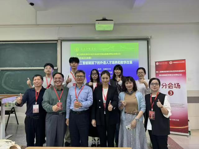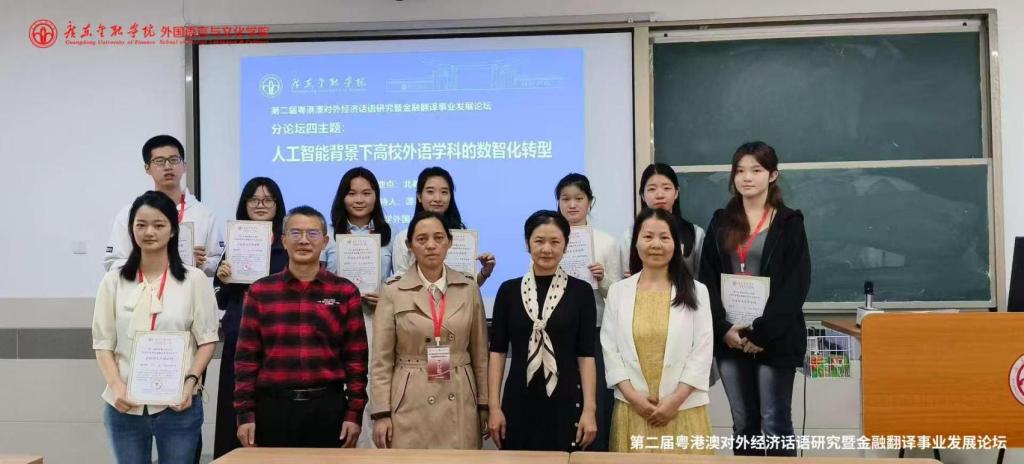 分论坛四主题为“人工智能背景下高校外语学科的数智化转型”,公司9位MTI研究生在该分论坛报告研究成果。龙心怡以高校MTI师生为调研对象,构建“AI赋能金融翻译人机协同质量评估体系”,从“信、达、雅”三维度设计12项评估指标,为MTI翻译教学质量管控提供工具。马洁容从生态翻译学视角研究《金融时报》中文网AI译后编辑,分析译者在“适应-选择”过程中的主体性作用,提出“译者主导、AI辅助”的译后编辑模式,明确译者在技术环境下的核心价值。高文慧基于功能目的论分析企业财务年报机器翻译的“信”与“达”,梳理出“数据单位误译”“专业表述偏差”等常见问题,针对性提出“术语库预训练+语境提示强化”的误译规避对策。燕会娟以“妃子笑荔枝”“五常香大米”为例,分析跨境电商场景下农产品文化意象的“失落”问题,提出“文化注释补充、意象联想重构”的翻译策略,助力农产品跨境传播中的文化价值传递。廖瑜明对比DeepSeek与贵州茅台酒厂官网对2024年度报告的英译文本,从目的论视角指出DeepSeek在货币术语等专业词汇上的适配性不足,建议企业翻译需结合国际通用标准优化AI译文。邬美意剖析AI金融隐喻翻译的“形式对应陷阱”,以“流动性陷阱”“黑天鹅事件”为例,提出“概念重构优先于形式对应”的突破路径,帮助AI更精准传递金融隐喻内涵。邓沛宜以《粤港澳大湾区发展规划纲要(2019年)》翻译为例,研究AI辅助下译者角色重构,指出译者需从“语言转换者”转向“策略设计者、质量校准者”,并梳理出译者需具备的“AI工具应用、跨文化协调”等新能力。陈慧呈结合Python情感分析技术,构建《论语》平行语料库研究翻译策略的情感考量,发现AI译文在“仁爱”“礼义”等概念的情感传递上存在偏差,提出“情感标签嵌入+人工微调”的优化方案。刘玲之基于DeepSeek开展金融文本AI辅助译后编辑实践,以银行理财产品说明书为例,总结出“术语一致性核查、句式逻辑梳理、文化适配调整”三大核心环节,可使译后编辑效率提升20%。
