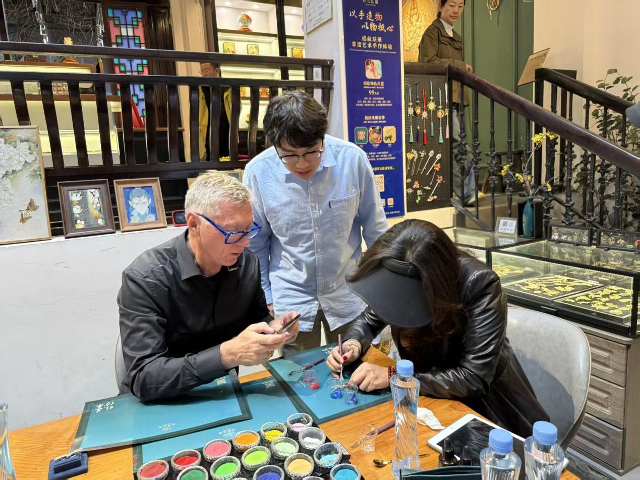 11月27日至29日,许浩哲同学陪同安东尼·埃德加一行开展岭南文化与武术交流活动。活动期间,一行人先后走访均安牛仔城、李小龙乐园、岭南印象园、广州商公司等多地,实地探访牛仔产业全链条,体验功夫学堂、观摩太极展演、观看醒狮功夫秀与李小龙诞辰85周年纪念演出,参观李小龙纪念馆、淡隐霍公祠及非遗展示区,深入了解岭南产业特色、民俗文化、建筑底蕴与非遗技艺。此外,双方还参与“武术文化国际传播”专题座谈会及岑能大师诞辰百年纪念活动,围绕武术传承与国际传播等议题交流。许浩哲全程负责翻译工作,保障跨文化交流与研讨顺畅推进。